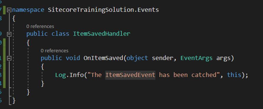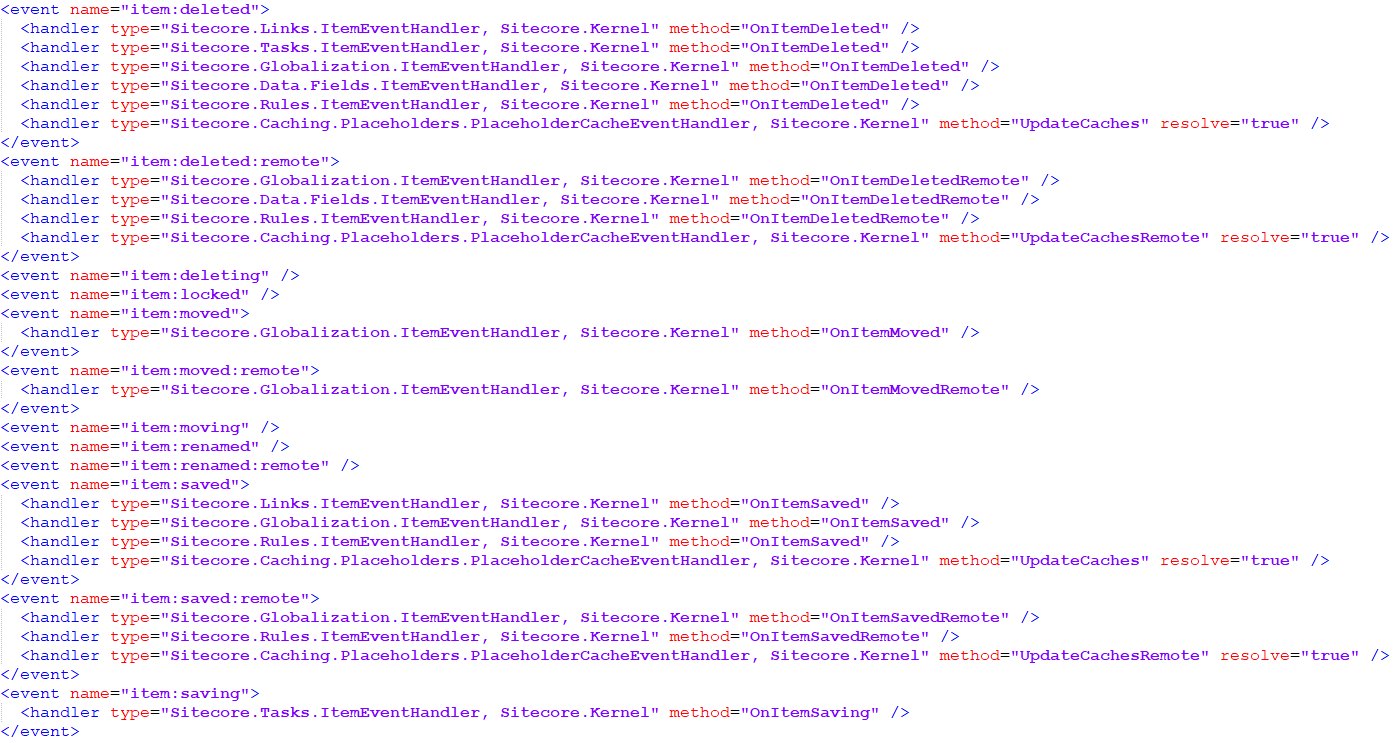 In the next step we will register this handler in Sitecore, there is two ways to register an own implemented event handler.
