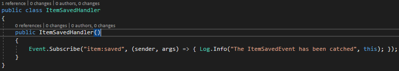 Now, every time an item is saved, the message "The ItemSavedEvent has been catched" will be logged.