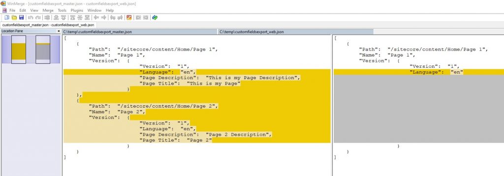 - Do the same export for comparison environment/database/tree